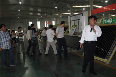 (光源太陽能公司副總經(jīng)理向考察團(tuán)介紹太陽能真空管)