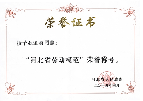 2014年5月前夕,河北省召開全省勞動模范先進工作者和先進集體表彰大會,光源太陽能公司趙進國榮獲“河北省勞動模范”稱號。