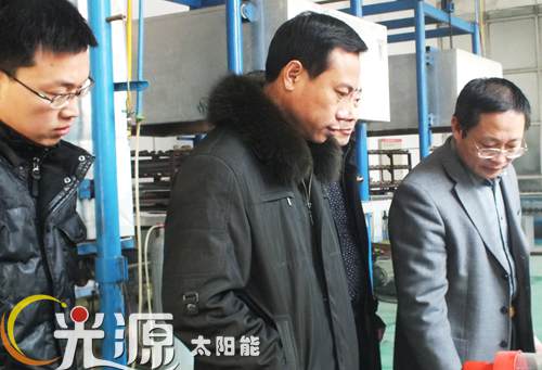 祁主任一行饒有興致地參觀了太陽能熱水器生產流水線,并就校企合作、定向培養、學生實習與就業等與總經理劉迎波進行了座談與交流。