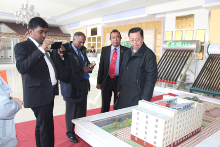 在光源公司總經(jīng)理劉迎波陪同下,斯里蘭卡客商先后參觀了太陽能采暖系統(tǒng)、燃氣壁掛爐車間、真空管車間和太陽能熱水器車間,觀看了光源太陽能公司視頻宣傳片,雙方進行了友好洽談,溝通了項目基本情況,促進了雙方了解,約定了互訪和進一步洽談等。