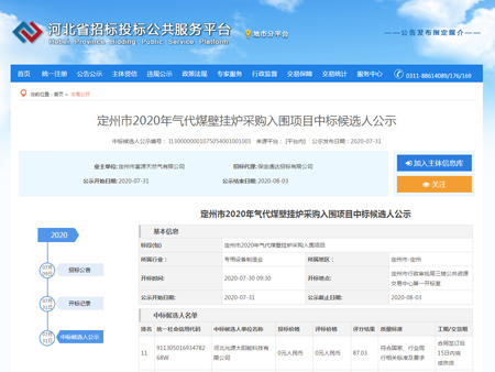 來咯!來咯!喜報來咯!光源中標定州市2020年氣代煤壁掛爐采購項目