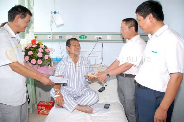 倡議書隨即引起了全體同事的高度關(guān)注,公司領(lǐng)導(dǎo)帶頭,廣大員工踴躍參與,紛紛主動捐款,全體員工用點(diǎn)滴仁愛之心,向達(dá)師傅傳遞了一份生命的熱度,譜寫了光源人互助互愛的贊歌。8月15日上午公司領(lǐng)導(dǎo)買來花籃、水果和募集到的近2萬元善款到醫(yī)院看望病中的達(dá)師傅,并鼓勵(lì)他用積極的心態(tài)戰(zhàn)勝病魔,早日康復(fù)!